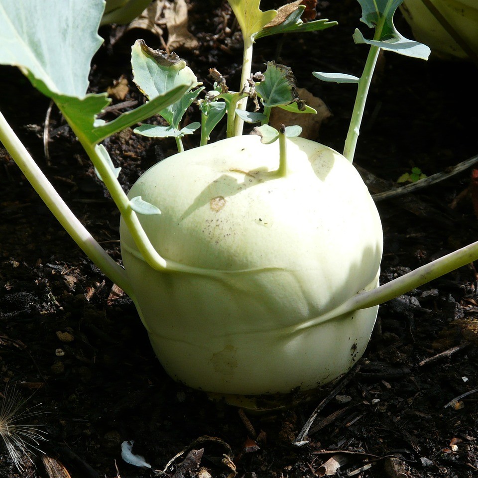 Капуста кольраби Гигант - Сорт позднеспелый. От посева семян до наступления технической спелости 90-100 дней. Стеблеплод округлый, крупный, диаметром 15-20 см, белесо-зеленого цвета, массой 2,5-3,0 кг. Мякоть белого цвета, нежная, сочная и приятного вкуса. Главная сортовая особенность — высокая стабильная урожайность, отличный вкус, транспортабельность и