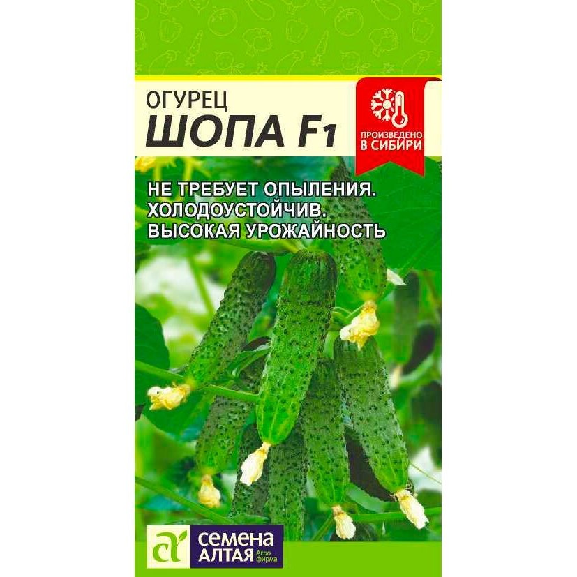 Огурец Шопа.Раннеспелый (39-41 день) партенокарпический гибрид для открытого и защищенного грунта. Растение мощное, с укороченными междоузлиями, ограниченным плетением, с пучковым типом плодоношения, в одном узле формирует 2-3 завязи. Плод цилиндрический, темно-зеленый, бугорчатый, белошипый, длиной 9-11 см, массой 90-100 г. Огурчики не перерастают, генетически без горечи, обладают отличными вкусовыми качествами как в свежем, так и в консервированном виде.