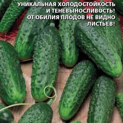 Сверхранний, партенокарпический гибрид женского типа цветения, с букетным расположением завязей и уникальной теневыносливостью, для теплиц, парников и улиц. Плоды цилиндрические, темно-зеленого цвета, бугорчатые, белошипые, длиной 8-12 см, сочные, нежные, хрустящие, очень сладкие. Гибрид устойчив к настоящей и ложной мучнистым росам, оливковой пятнистости и корневым гнилям.