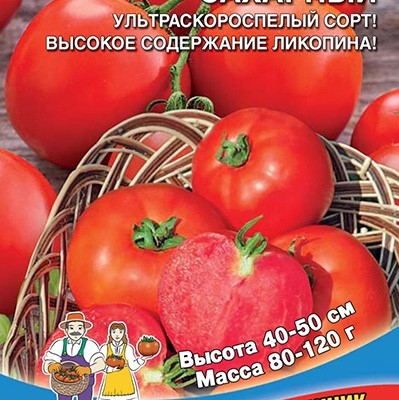 Томат Непасынкующийся сахарный - Ультраскороспелый (до 95 дней) сорт для открытого грунта и плёночных укрытий. Подходит для выращивания безрассадным способом в зонах неустойчивого земледелия. Растение детерминантное, штамбовое, высотой 40-50 см, с очень крепким стеблем. Не требует пасынкования. Плоды крупные, округлые и плоскоокруглые, красные, массой 80-120 г, очень вкусные.