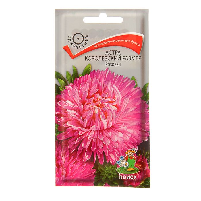 Астра королевский размер Розовая - Растение широкораскидистое, высотой до 100 см. Цветоносы колоновидные, прочные, длиной 50 см. Соцветия светло-розовой окраски. Цветет в августе - сентябре. Используют очень широко: для посадки в сборные цветники группами, на рабатки - рядами, для бордюров и срезки.