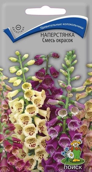 Наперстянка см/окр - Растение высотой до 120 см. Кистевидные соцветия до 50 см длиной. Окраска цветков самая разнообразная: белая, кремовая, розовая, карминная, пурпурная. Цветет с июня по август. Широко используют для посадок на газонах, в миксбордерах, рабатках. Очень эффектны групповые посадки на фоне газона.