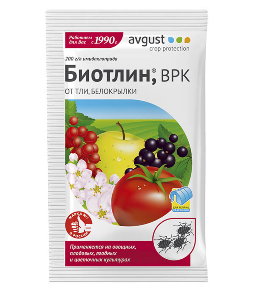 Биотлин — садовый инсектицид быстрого действия, активный в отношении большинства полужесткокрылых огородных вредителей, главным образом тли и ее самого агрессивного подвида — филлоксеры. Препарат дает отличные результаты при обработке им яблонь от цветоеда. От Биотлина быстро погибает белокрылка (в том числе тепличная), цикадка, трипсы, моль, морковная листоблошка, почвенная мушка и др. Наибольший эффект достигается применением Биотлина от вредителей в закрытом грунте.