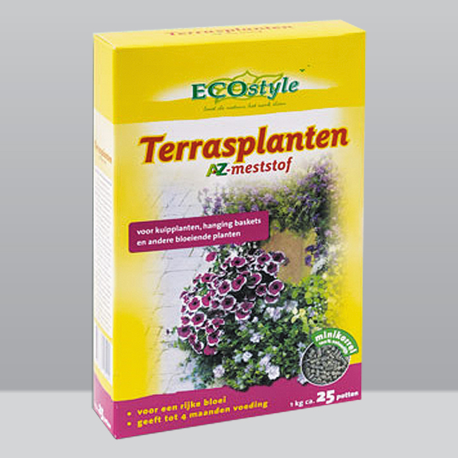 Фасовка: 1 кг. Марка: 'Террасплантен-АЗет'. 100% натуральное органическое удобрение, в котором содержание основных макро- и микроэлементов оптимально для горшечных растений, висячих корзин и других декоративных однолетних и многолетних растений в горшках, включая комнатные растения. Разработано для профессионального применения, отвечает самым жёстким требованиям к экологической безопасности. Содержит смесь почвенных микроорганизмов, обеспечивающих удобрению высокую эффективность. Сфера применения: садоводство, ландшафтный дизайн, домашнее цветоводство.Основные свойства: обладает быстрым и длительным действием, полностью обеспечивает растения питанием в течение 4-х месяцев; обеспечивает здоровье растению и обильное цветение даже поздней осенью; защищает растения от фитопатогенов и прочих болезней; активирует биологические процессы в почве и улучшает её физическую структуру (способствует образованию пор, доступу воздуха, воды и питательных веществ); не вымывается из почвы и не разрушается от холода. Хранение: В