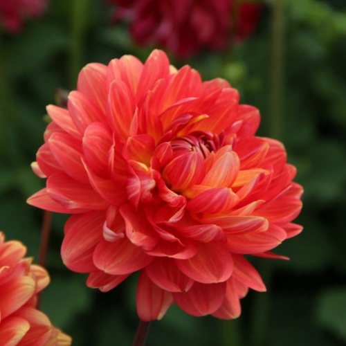 Высота: 80-100 см. Диаметр цветка: 10-15 см. Георгина с очень приятной желтой окраской цветков, который по внешним краям лепестков переходит в теплый абрикосово-розовый тон.