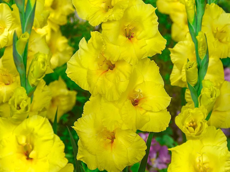 Не хватает ярких и сочных красок лета в Вашем саду, тогда крупно цветковый гладиолус Bananarama (Бананарама) это то, что Вам нужно.Период цветения приходится на июль-сентябрь, образуя прелестные крупные цветы лимонно-желтого оттенка с волнистыми широко открытыми лепестками диаметром 12-17 см. Продолжительность цветения 2-4 недели.