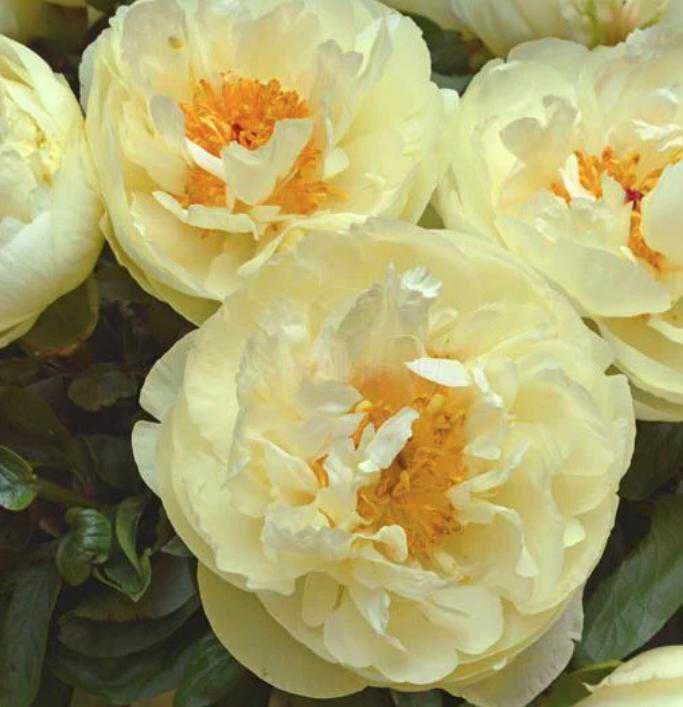 Сорт с кремово-желто-белыми полумахровыми цветками диаметром 15 см. Куст прямостоячий высотой до 90 см. Стебли крепкие с темно-зеленой листвой. Подходит для срезки.