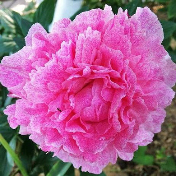 Махровый. Цветок большой розовый с тёмно-розовым крапом. Листва тёмно-зелёная. Стебли прочные. Срок цветения средне-поздний.