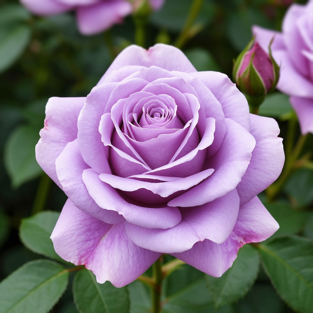 Голубой оттенок! Невероятная окраска классических высоких бокаловидных бутонов на ярком солнце приобретает голубой оттенок. Кусты прямые, ровные, на каждом стебле по одному крупному бутону. Допускается выращивание в тени. Подходит для срезки, имеет очень мало шипов. Крупная глянцевая листва высокоустойчива к болезням.