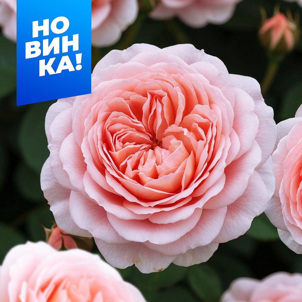 Густомахровый цветок ностальгической формы, кремово-розовый с абрикосовым центром.