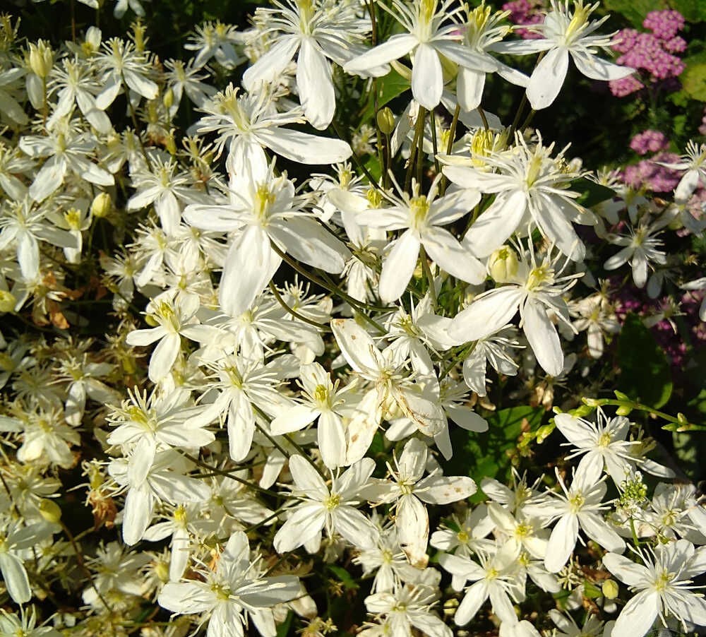 травянистая многолетняя лиана длиной до 2 м. Листья сложные, состоят из 3-7 листочков. Цветки раскрытые, до 2-3 см в диаметре, собраны в соцветия со сладким ароматом. Чашелистиков 4, они белые. Пыльники светло-желтые. Цветет в июне-июле на побегах текущего года. На одном побеге может быть от 150 до 500 цветков, они полностью покрывают куст. Клематис Манчжурский завязывает семена. Отмершие побеги ежегодно под зиму обрезают.