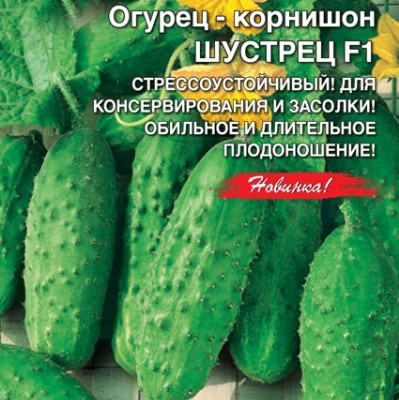 Огурец - корнишон Шустрец - Раннеспелый, высокоурожайный, самоопыляемый гибрид для выращивания в любых условиях (весенние теплицы, тоннели, открытый грунт). Зеленцы бугорчатые белошипые, ярко-зелёной окраски, длинной 9-11 см, вкусные, хрустящие, ароматные, хороши в засолке, мариновании и свежих салатах. Огурчики небольшого размера, поэтому они прекрасно подойдут для консервирования в небольших банках. Устойчивость гибрида к мучнистым росам гарантирует получение урожая на протяжении всего лета.