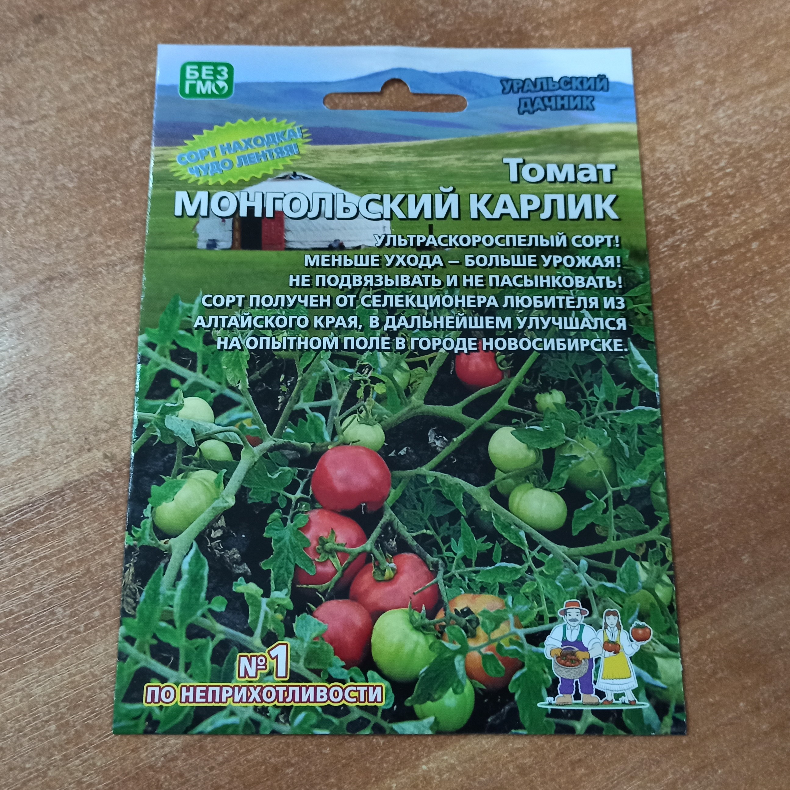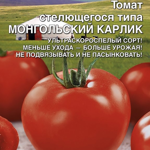 Томат Монгольский Карлик стелющегося типа - Ультраскороспелый чудо сорт, выведенный сибирскими селекционерами. Куст детерминантного типа роста. Плоды достаточно крупные, массой до 200 г, глубокого бордово-красного цвета, мясистый и сбалансированный по вкусу. Можно не подвязывать, так как куст прекрасно стелиться по земле и может занимать площадь до 0,5 м?. «Монгольский карлик» просто находка для ленивых, он не требует пасынкования и подвязки. Может спокойно перенести отсутствие полива, но затяжные эксперименты проводить не стоит.