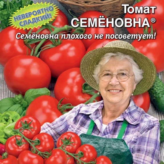 Томат Семеновна - Необычайно раннего срока созревания, от всходов до массированного плодоношения всего 94-96 дней. Возделывать можно как в открытом грунте, так и под временными плёночными укрытиями. Не переживайте, много забот Семёновна® вам не доставит, сорт как настоящий Сибиряк приспособлен к резким перепадам температур и влажности в течение всего вегетационного периода, также его не нужно ни подвязывать, ни пасынковать, зато кустики будут сплошь покрыты круглыми, увесистыми плодами, массой 110-130 г, необычайно вкусными и полезными! Полезные они, так как в каждом плоде много витаминов: каротин 6,1 мг%, витамин «C» - 38,7 мг% и множество других, а вкус... как в сказке! Такие плоды будут желанными гостями на вашем столе в свежем виде, а как наедитесь, можно и консервировать, кстати лучше их делать в собственном соку по рецепту Семёновны. Сорт выведен в Сибири, без всяких там ГМО, для родных и любимых, детей и внуков с любовью!