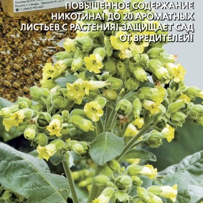 Махорка Русская - Однолетнее растение, высотой около 90 см. Листья крупные, морщинистые, светло или темно-зеленого цвета, хозяйственной годности достигают через 60-90 дней после высадки рассады на постоянное место. За период вегетации с одного растения можно собрать в среднем 20 листьев отличного качества. Листья содержат никотина в несколько раз выше, чем большинство сортов курительного табака.