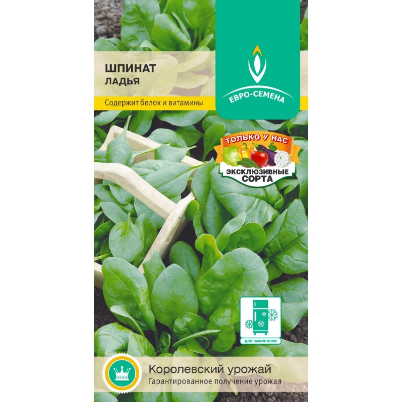 Раннеспелый сорт (период от полных всходов до уборки урожая 28-31 день). Розетка листьев компактная, полуприподнятая. Листья зеленые, сочные, нежные, слабопузырчатые, светло-зеленые. Шпинат ценная по питательным качествам культура, богатая белком, солями железа, калия и кальция, витаминами.Масса одного растения 25-38 г. Используется для потребления в свежем виде и для замораживания. Сорт отличается холодостойкостью и устойчивостью к цветушности.