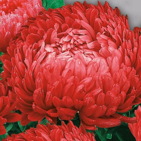 Астра пионовидная Дюшес красная изумительные букеты для срезки. Куст колонновидной формы, ветвистый, высотой 70 см. Цветоносы прочные, густооблиственные. Соцветия ярко красные, полусферические, густомахровые, непоникающие, 8-10 см в диаметре. Язычковые цветки широкие, приподняты вверх, закрывают трубчатые цветки. Цветет август-сентябрь. Используют для посадки в сборные цветники группами, на рабатки – рядами и для срезки.