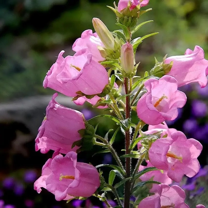 Колокольчик красив в различных цветочных композициях и дает изящный материал для срезки. Растение образует куст пирамидальной формы высотой 80 см. Крупные розовые цветы собраны в пирамидальные соцветия. Цветет в июне-июле.