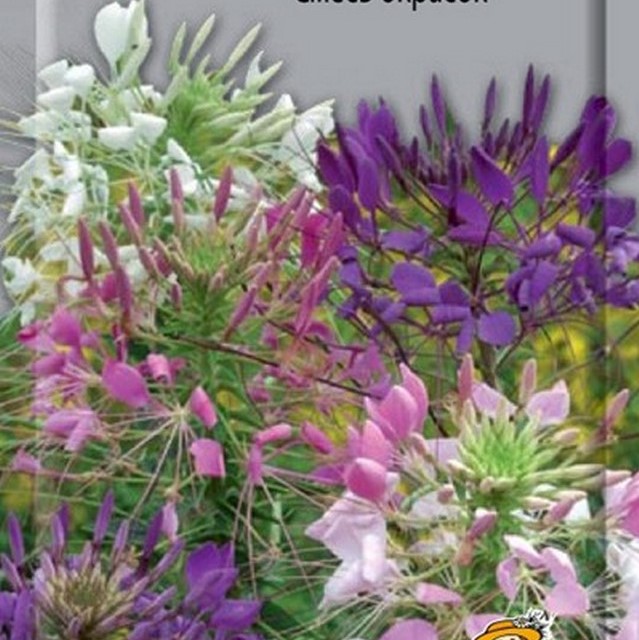 Клеома Смесь - Травянистое растение с прямостоячими стеблями, 80-100 см высотой. Цветки имеют оригинальную форму, четырёхлепестные, 2-3 см в диаметре, на длинных цветоножках, собраны в верхушечные кистевидные соцветия, разнообразной окраски. Цветет обильно с июня по сентябрь. Используют в миксбордерах, групповых и одиночных посадках.