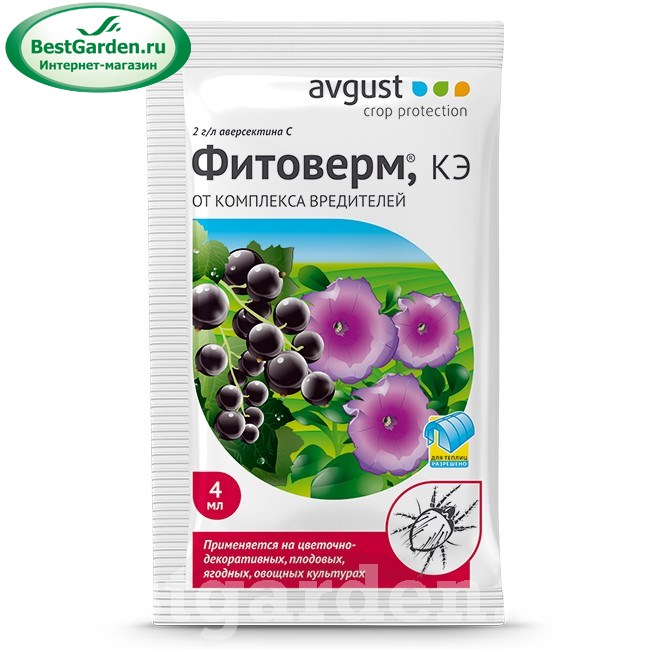 Биологический препарат для борьбы с клещами, тлями, трипсами и листогрызущими гусеницами на овощных, плодовых, цветочных культурах, комнатных растениях. Фитоверм — препарат природного происхождения, произведенный почвенными микроорганизмами.