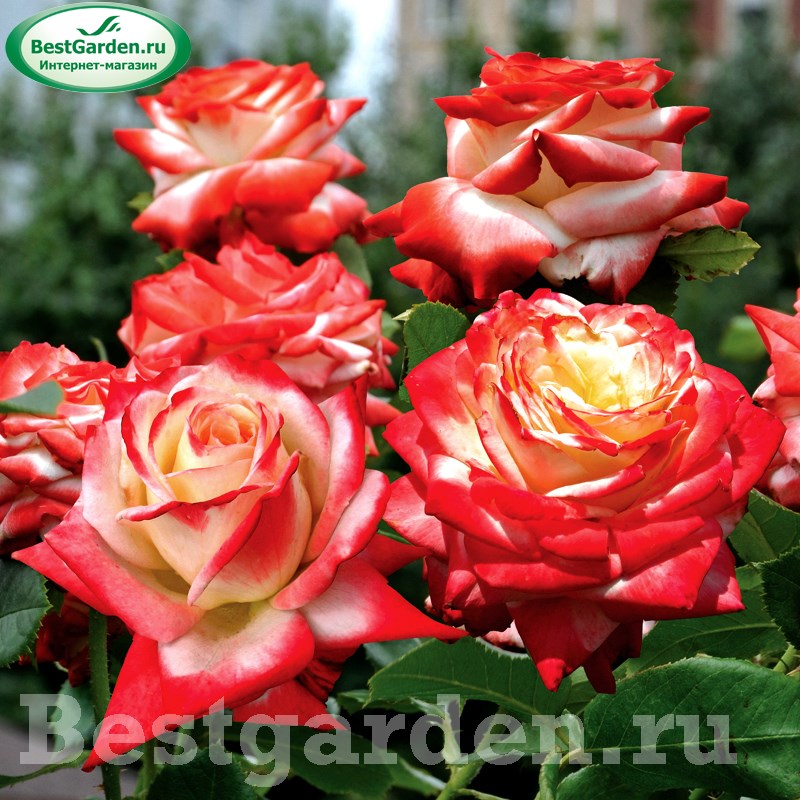 Роза Императрица Фарах – раскрывающиеся бутоны необычайно элегантные! Края лепестков бледно-малиновые, лепестки закручены в классический бутон, так что наружу отгибаются только окрашенные кончики. Вначале они выглядят в основном малиновыми, но по мере распускания цветки становятся скорее белыми. Контраст между белыми лепестками и их малиновыми краями смотрится красиво на всех стадиях роспуска цветка. Цветки крупные, с длинными лепестками, появляются обычно по одному, изредка в кистях до 5 шт, на длинных побегах, превосходно подходят для срезки. Листва крупная, блестящая, устойчива к черной пятнистости, куст сильнорослый, прямостоячий.