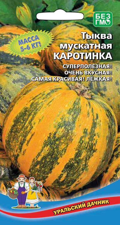 Сорт позднеспелый (от всходов до сбора плодов 124-130 дней). Растение длинноплетистое (до 6 м). Плод короткоовальный или короткоцилиндрический, широкий, слабосегментированный. При полном созревании окраска буро-коричневая с розовым оттенком. Масса плода 4,5-6,8 кг. Мякоть созревшей тыквы ярко оранжевая, почти красная, очень толстая (до 10 см), хрустящая, плотная, нежная, сладкая, имеет арбузный аромат, вкусна и полезна даже в сыром виде. Урожайность 3,7-4,4 кг/м2.