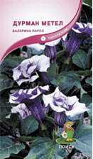 Дурман Балерина Парпл - Однолетник. Высота: 50 см. Цветение: обильное и продолжительное, фаза цветения начинается через 3-4 недели после всходов. Сказочно-прекрасные махровые 'граммофоны' цветов. Многолетнее травянистое растение, выращиваемое как сезонный однолетник. Листья светло-зеленые, сердцеобразные с опушением. Крупные воронковидные цветы. Используют для клумб и в одиночных посадках, как контейнерное растение.