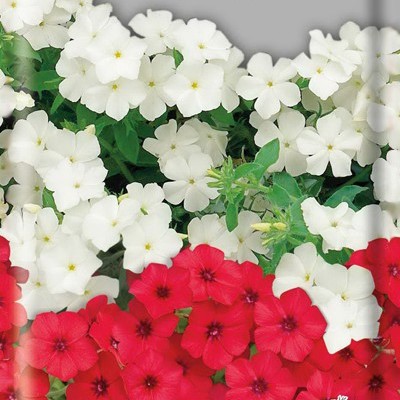 Флокс Фея - Куст сильноветвящийся, высотой 25 см. Яркие цветки собраны в зонтиковидный щиток. Соцветия белого и красного цвета. Цветет обильно с июня по октябрь. Используют для клумб, бордюров, рабаток.