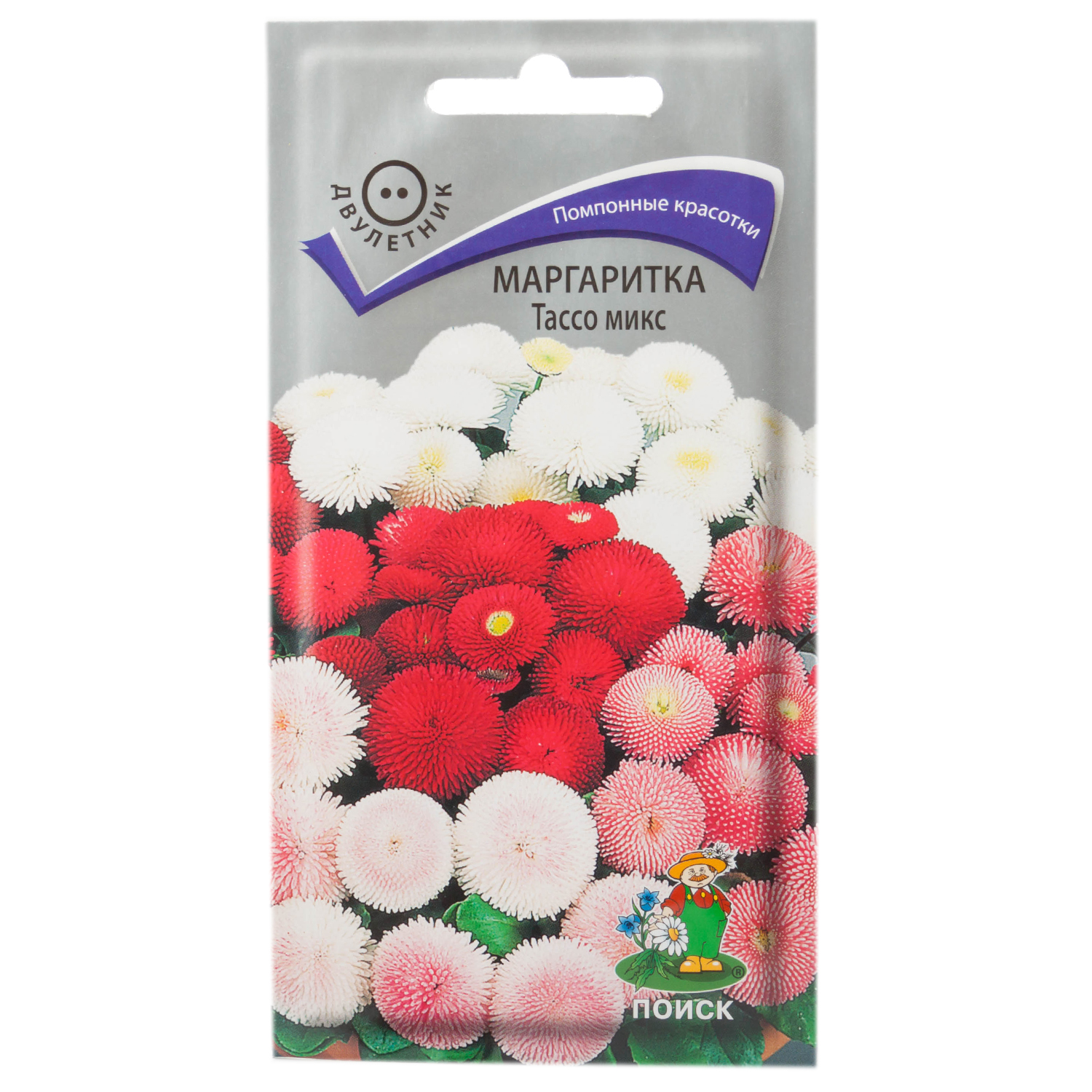 Маргаритка Тассо микс - Помпонные маргаритки изумительной красоты! Компактное растение высотой до 12 см. Соцветия густомахровые розово-кремовые, светло-розовые, темно-розовые, красные, белые диаметром до 4 см. Универсальное использование: как почвопокровное растение, для обрамления клумб, балконных ящиков, альпинариев.