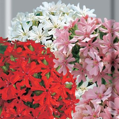 Лихнис Микс - Неприхотливое и радующее глаз растение. Прямостоячие облиственные стебли, высотой 80-90см, увенчаны крупными лососево-розовыми, огненно-красными, белыми соцветиями диаметром до 10 см. Цветет июнь-август. Используется для групповых посадок в цветники и на газоны.