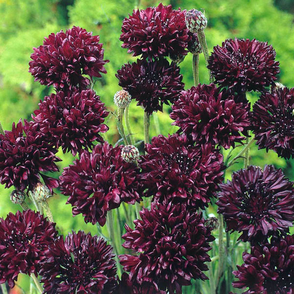 Василек Блэк бол любимый цветок многих народов мира. Растения высотой около 80 см. Соцветия махровые шарообразные пурпурно-черной окраски. Неприхотлив в выращивании. Цветет с июня по сентябрь. Прекрасно подойдет для высоких бордюров, цветников в пейзажном стиле. Незаменим для создания "полевого" букета!