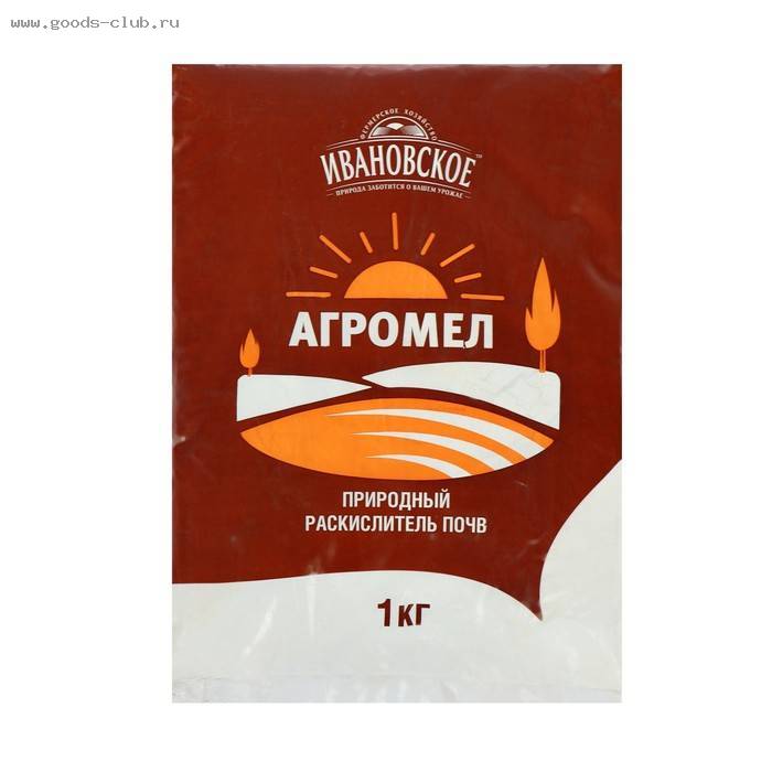 Универсальный раскислитель кислых почв, материал для опудривания корнеплодов от загнивания, наполнитель побелочных составов. Агромел представляет собой продукт, получаемый путём дробления, сушки и помола карбоната кальция природного происхождения и применяется для известкования кислых почв, с целью устранения избыточной кислотности. Агромел является наиболее удобным для известкования быстродействующим материалом. Это химически не активное вещество, безвредное для здоровья, обладающее всеми необходимыми для известкования свойствами.