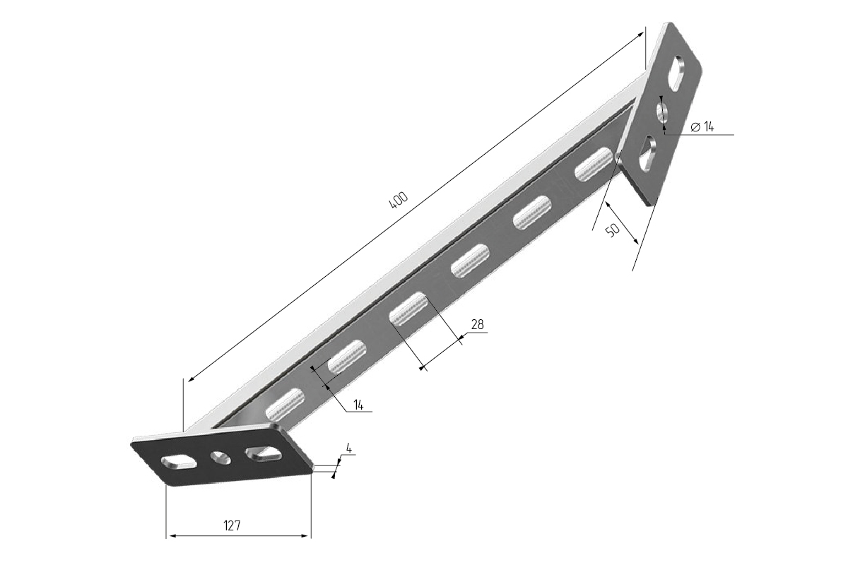 Усиленная укосина для консолей и подвесов, 400 мм