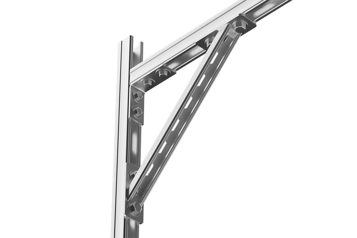 Применяется для усиления настенной консоли, повышения ее жесткости и несущей способности. Изделие служит для поддержки массивных монтажных систем, собранных из металлических профилей. Укосины применяют в конструкциях консольных кронштейнов, эстакад, используемых при трассировке лотков для электрических кабелей, трубопроводных и вентиляционных сетей, прочих систем жизнеобеспечения.
